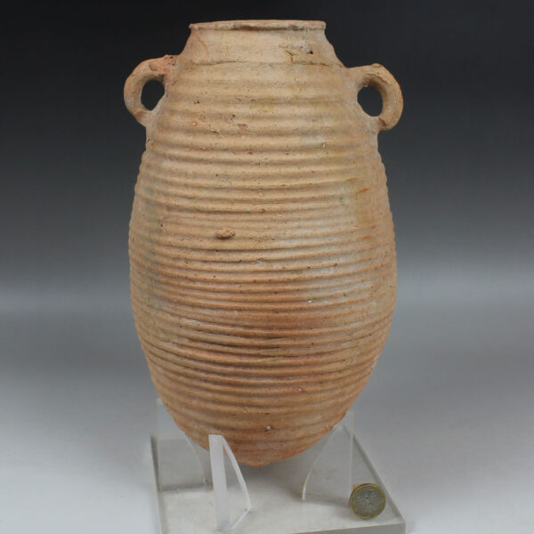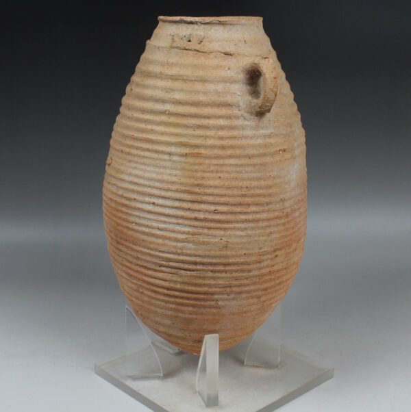 Hellenistic and Roman amphorae are outstanding examples of ancient ceramics that played a pivotal role in the logistics and trade of Greek and Roman civilizations. Hellenistic amphorae, dating from the Hellenistic period (approximately 323-31 BCE), were notable for their variety of shapes and decorations. They were used to transport a wide range of products, from olive oil and wine to salted fish. Some Hellenistic amphorae featured inscriptions that provided valuable information about their content and origin, facilitating commercial management.