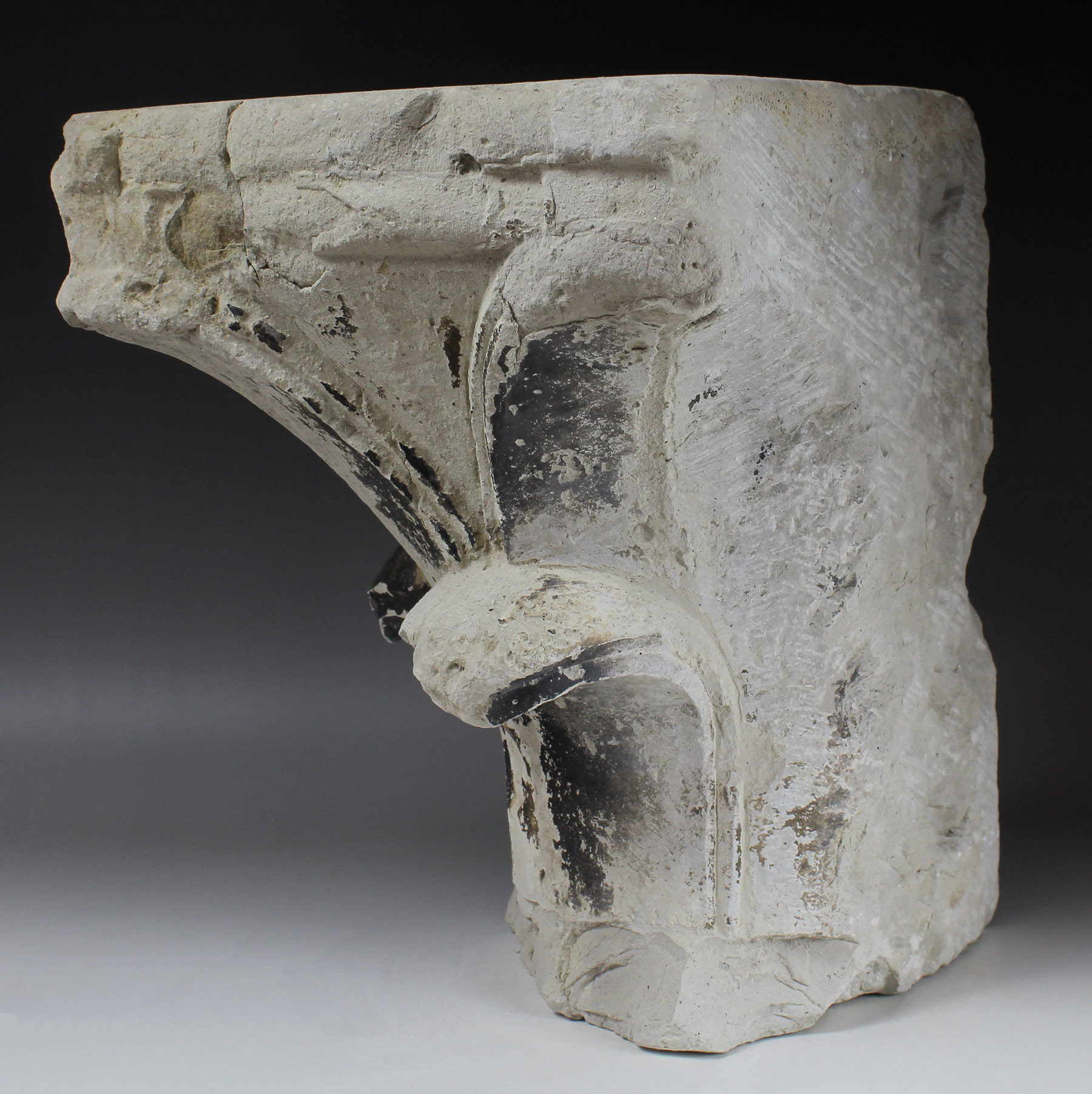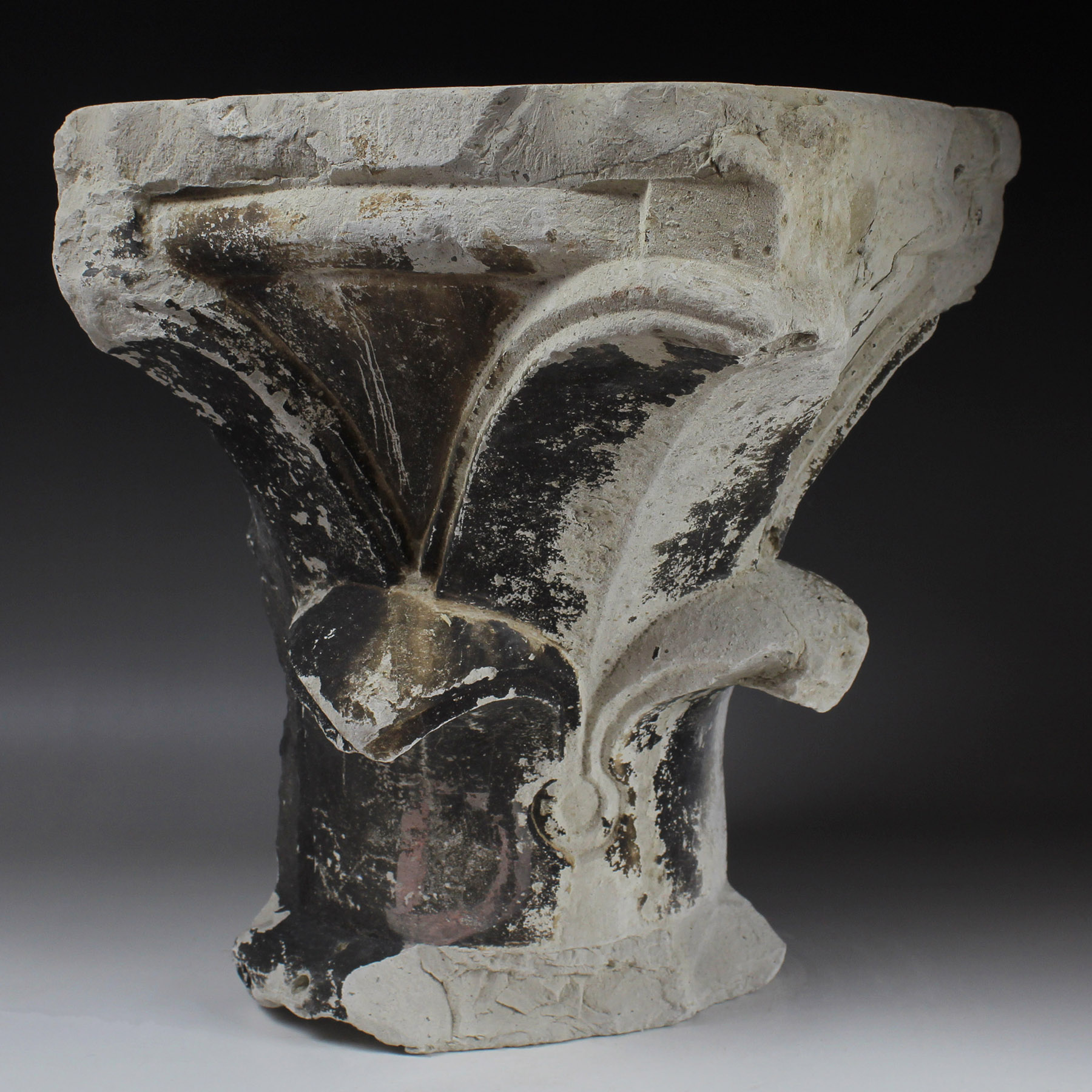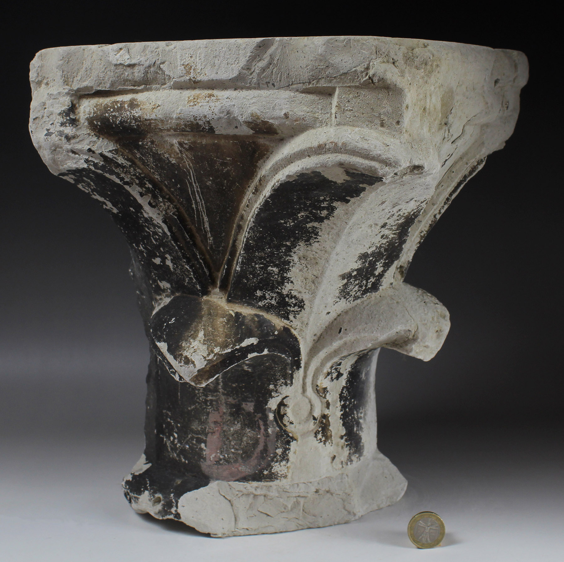 Medieval corner capital with cross-headed leaf decoration