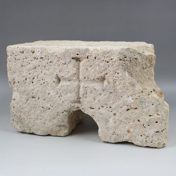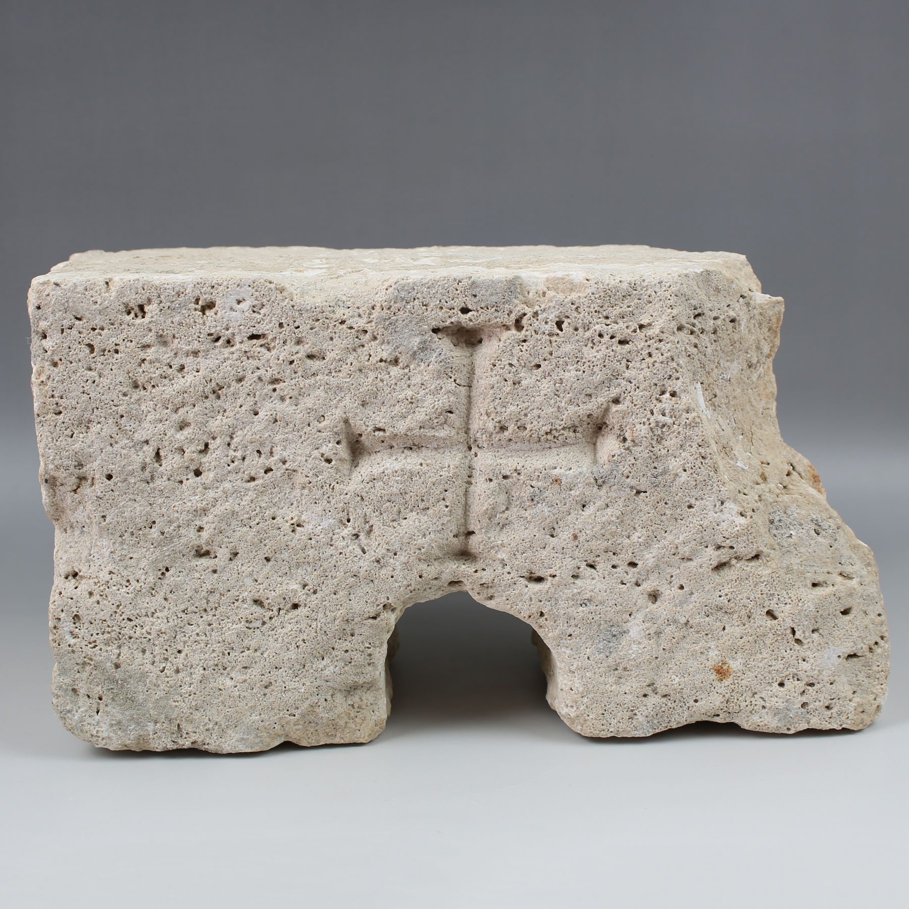 These fragments, often recovered from ecclesiastical ruins or repurposed architectural contexts, were typically part of larger masonry structures like churches, chapels, or cloisters. The cross, incised rather than painted or carved in relief, suggests a humble yet deliberate act—perhaps by a mason, pilgrim, or cleric—meant to consecrate, protect, or sanctify the space.