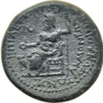| REVERSE | ΕΠΙ ΛΕΥΚΙΟΥ ΣΕΡΟΥΗΝΙΟΥ ΚΑΠΙΤΩΝΟΣ / ΑΚΜΟΝΕΩΝ. Zeus seated left, holding patera and sceptre; crescent and owl to left. |