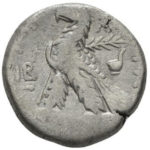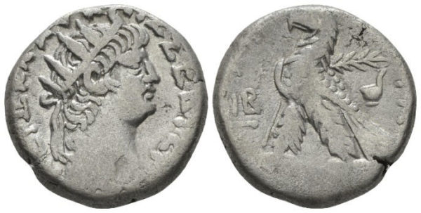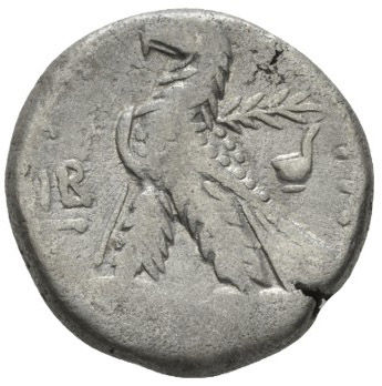 | REVERSE | AYTOKPA, eagle walking left with palm branch, LIB to left, simpulum to right. |