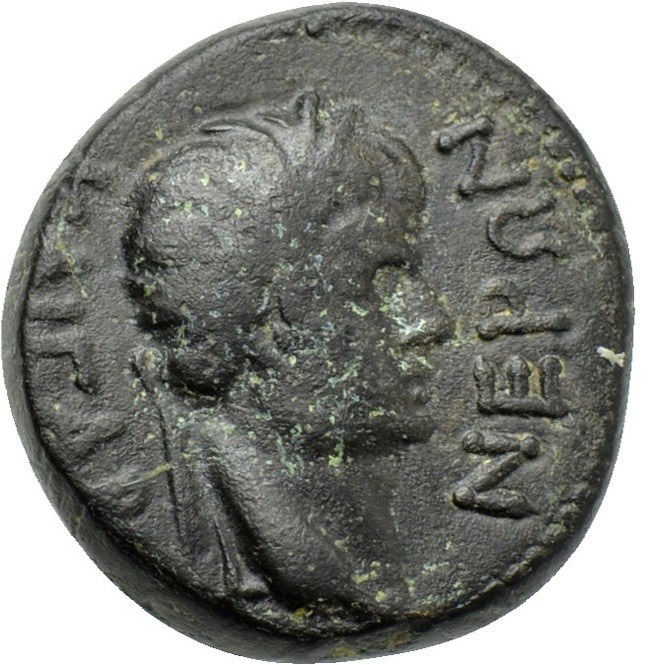 | OBVERSE | NΕΡΩΝ ΚΑΙCΑΡ. Laureate head of Nero right. |