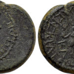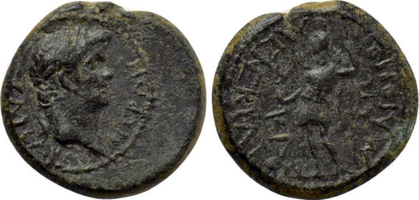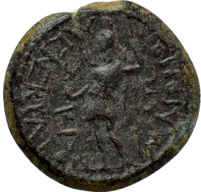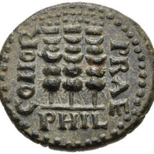 REVERSEΜΑΙΟΝΩΝ ΜЄΝЄΚΡΑΤΟVC / ЄΠ ΤΙ – ΚΛ. Men standing left, holding pine cone and sceptre.