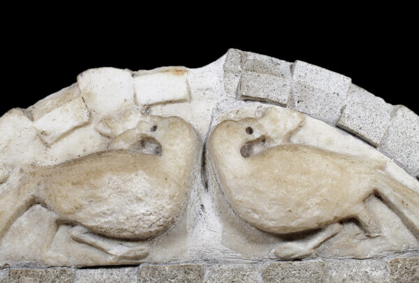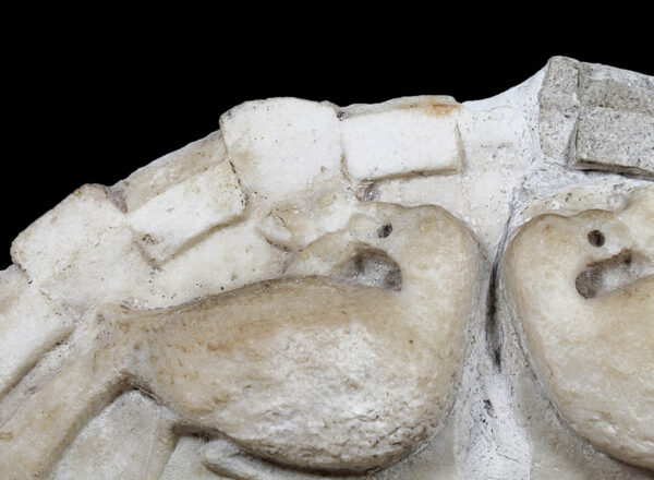 Marble bezels adorned with peacock motifs were commonly used in various Christian contexts during this period. They could be found on the sarcophagi (stone coffins) of Christian burials, where they served as both decorative elements and symbols of hope for the deceased’s resurrection. Additionally, they were used in the decoration of churches and other religious structures, where they reinforced Christian beliefs through visual representation.