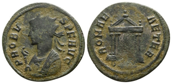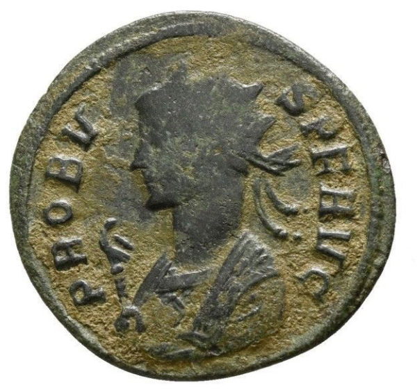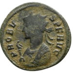 OBVERSEPROBVS P F AVG Radiate and mantled bust of Probus left holding eagle tipped scepter.