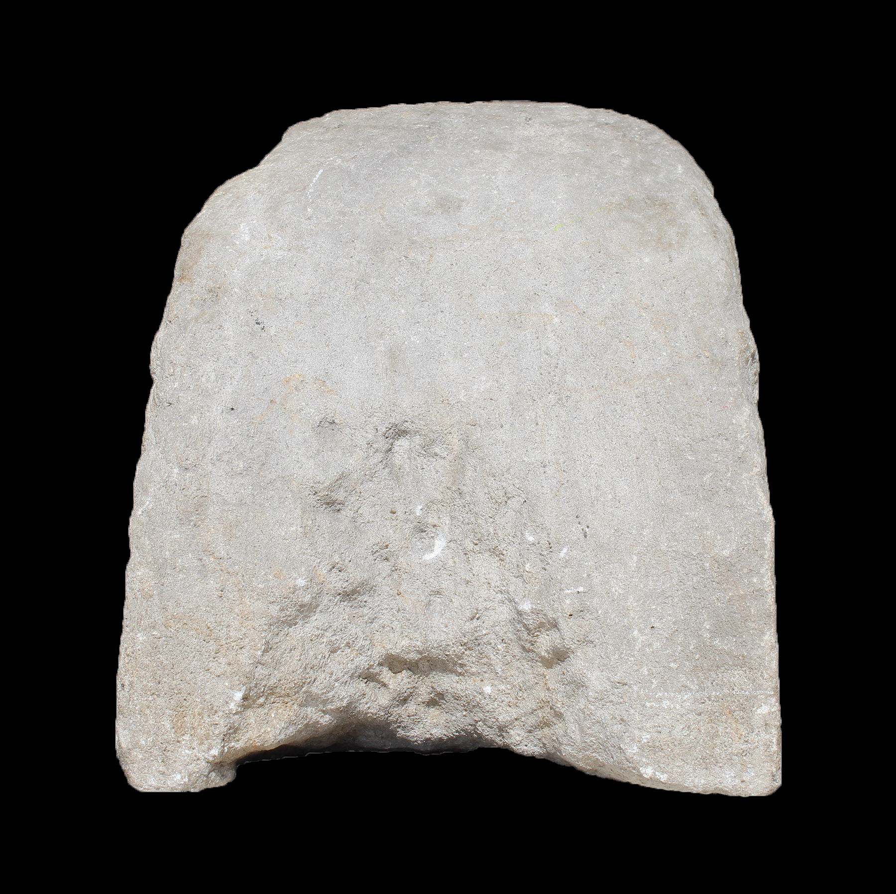 It’s a decorative sculpture, angular mask of a tomb or a civil or cultural monument. The local historian Jean Leroy shows us some research on the subject. Because of their volume, we can think of a funerary function that remember a type of monuments that cover the tombs of important military persons. It could also belong to the type of cultural monument of the so-called “four gods” and which were particularly found in the north-west of Gaul. They were characterized by being covered with sculpted scales and consisted of a rectangular base decorated with a divinity on each face.