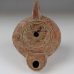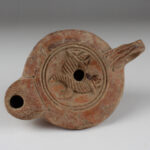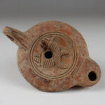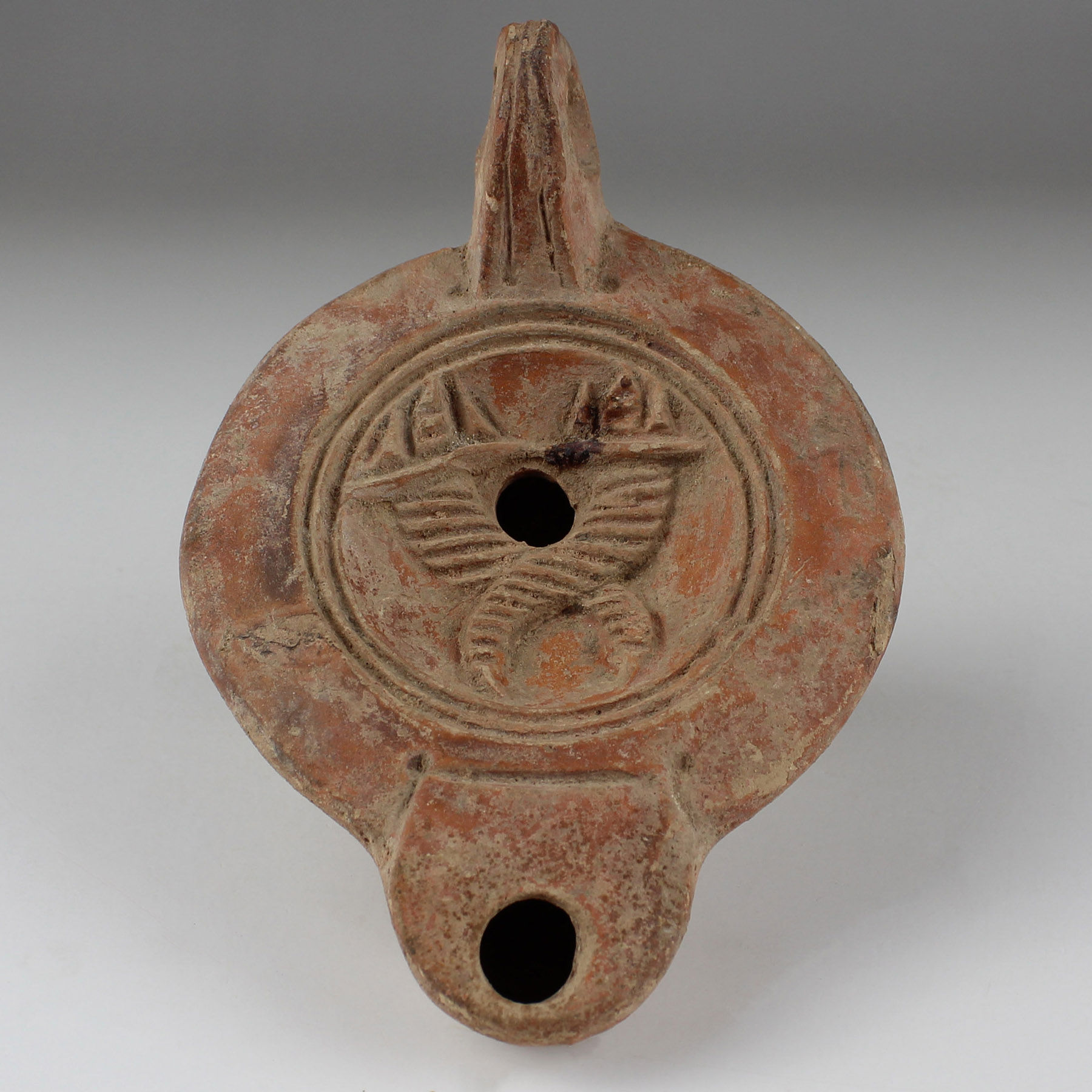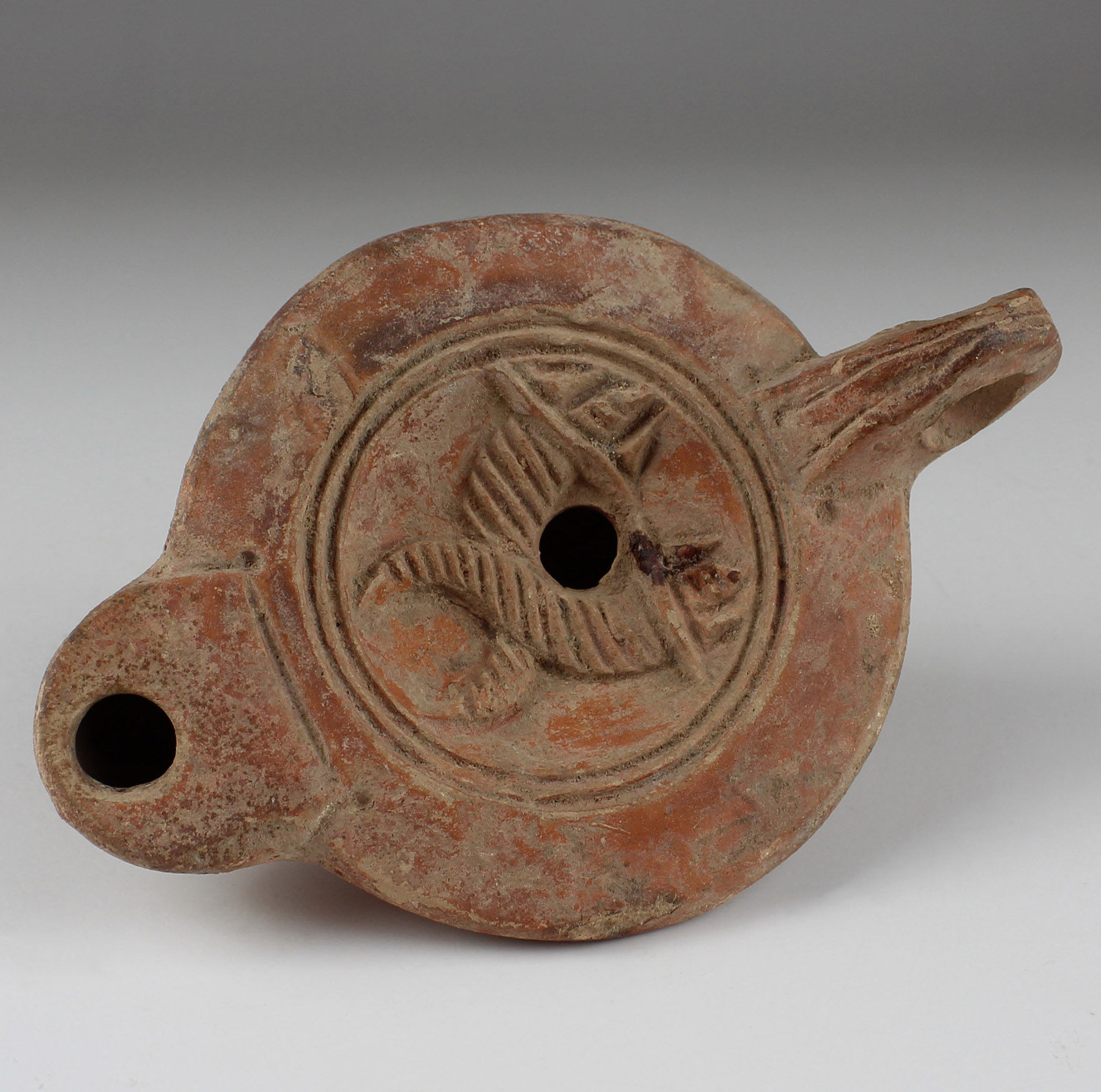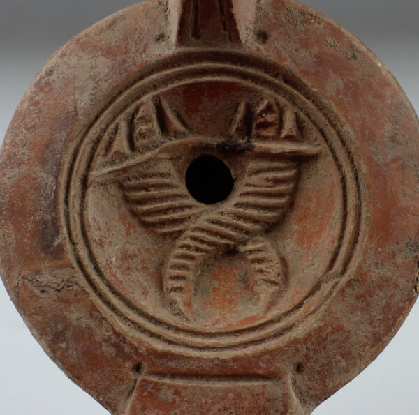 | ITEM | Factory oil lamp with cornucopias and makers stamp ‘IVNIDRACO’, Type Bussière D II 1 |