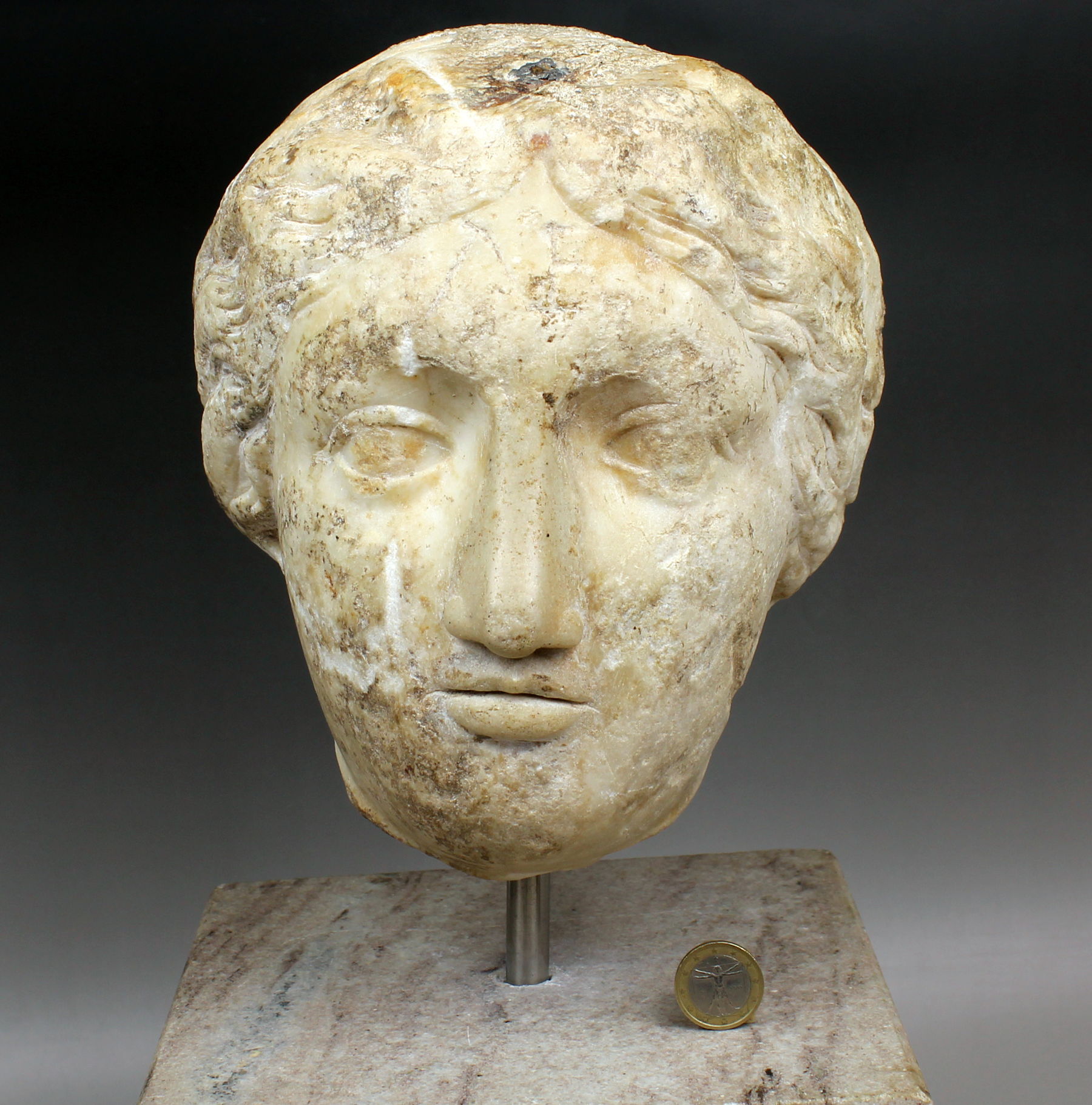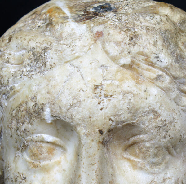 The numerals ΛΕ were carved on the forehead, which can be interpreted as ‘35’. The weight corresponds to approx. 35 libra of 326g from the Byzantine period.