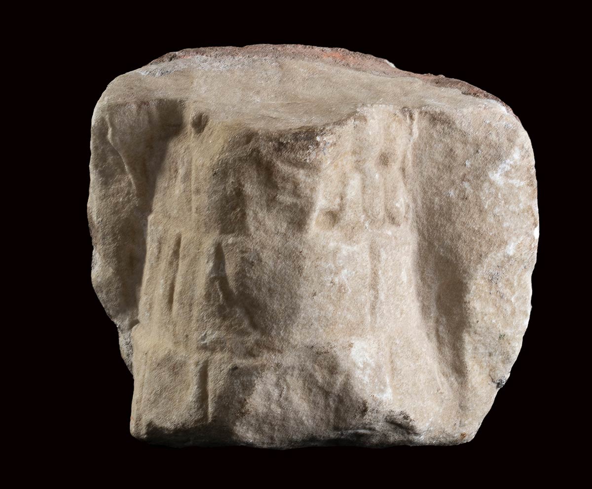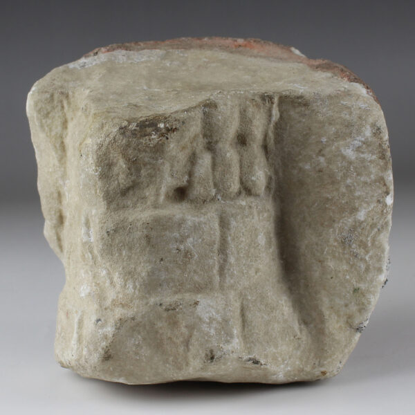 Furthermore, the use of marble for this fragment of the lorica musculata elevates its status from purely functional armor to a work of art. Marble was a material associated with prestige and luxury in ancient Rome, often reserved for monuments, sculptures, and architectural elements. By incorporating marble into the design of military equipment like the lorica musculata, the Romans demonstrated their appreciation for aesthetics even in the realm of warfare.