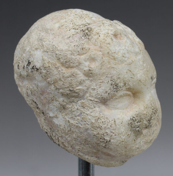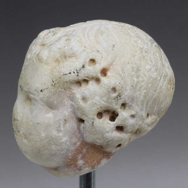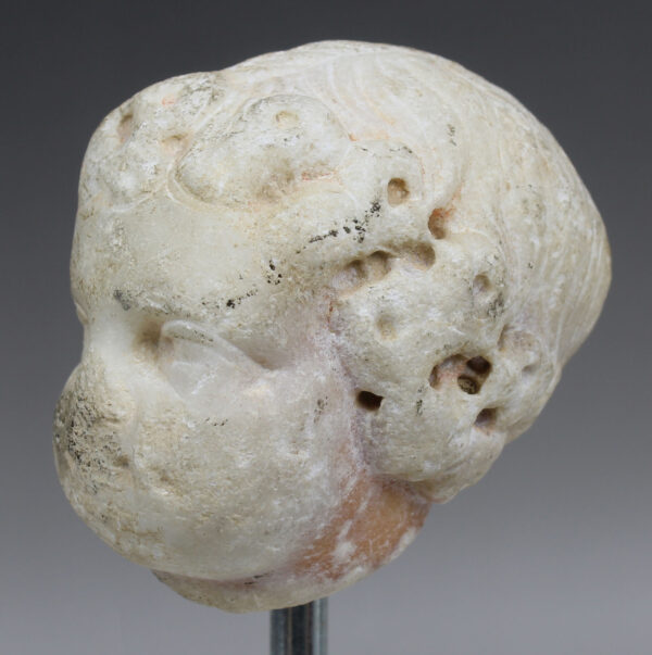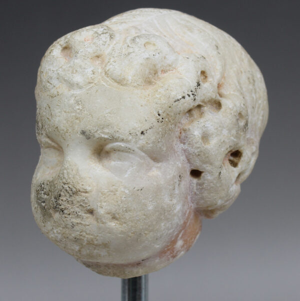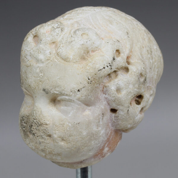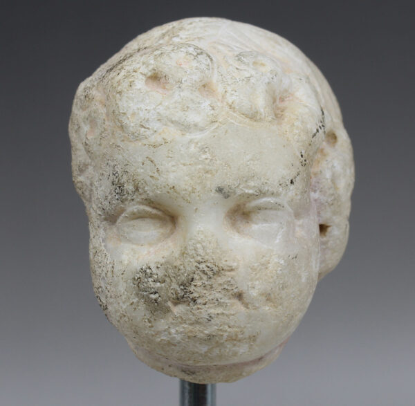 Roman child heads in marble are artistic representations of children created during the Roman Empire, known for their lifelike features and delicate craftsmanship. These sculptures strike a balance between naturalism and idealism, capturing the innocence and beauty of youth. Roman sculptors used high-quality marble and intricate carving techniques to depict children with remarkable precision. Often created as portraits of specific individuals, these child heads held symbolic value, serving as reminders of family lineage or commemorating deceased children when placed on tombstones. Drawing from Greek influences, Roman child heads showcase the continuity and evolution of artistic traditions, and their durability has allowed them to endure through the centuries, providing insights into the Roman world’s culture and aesthetics.