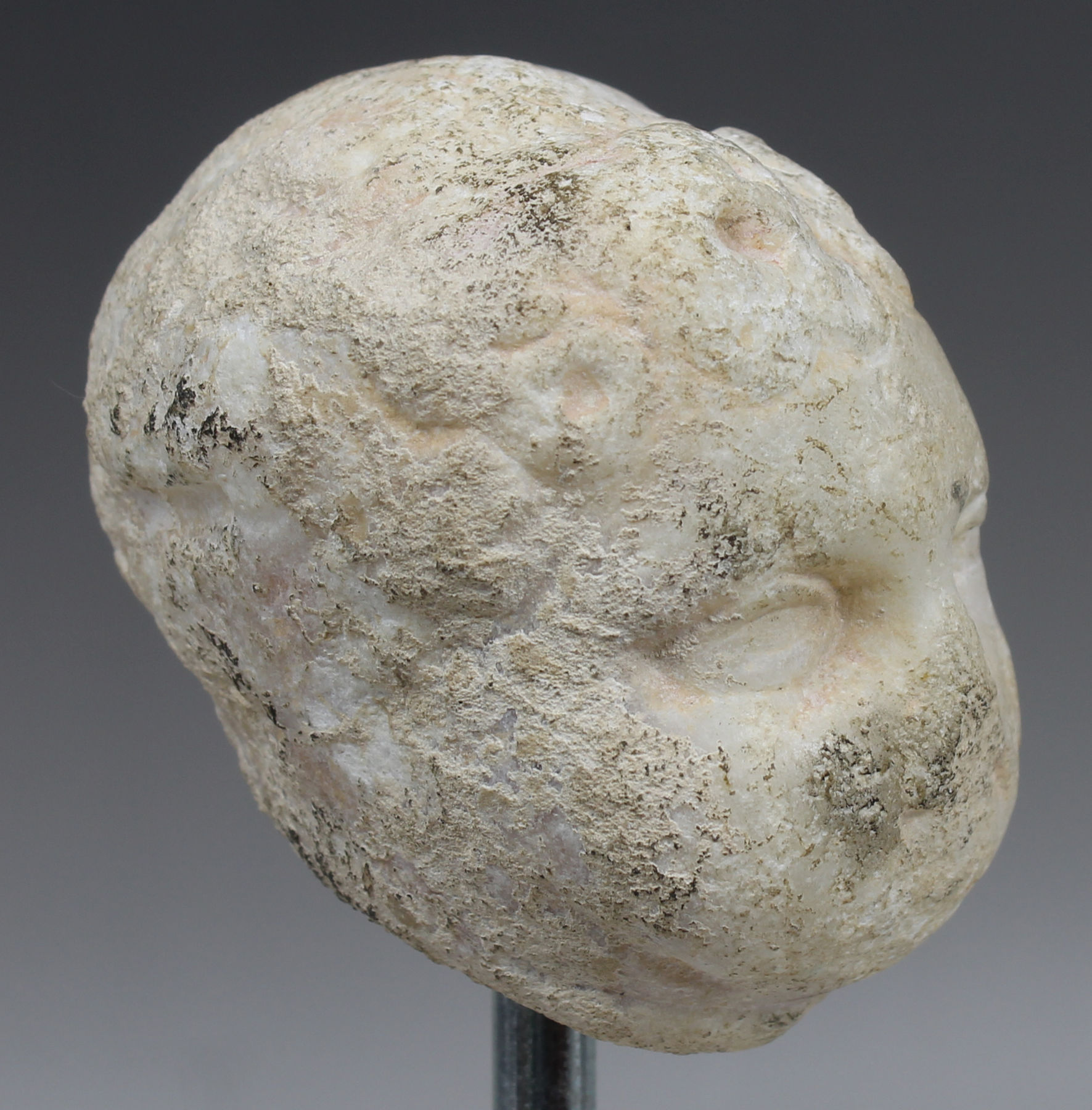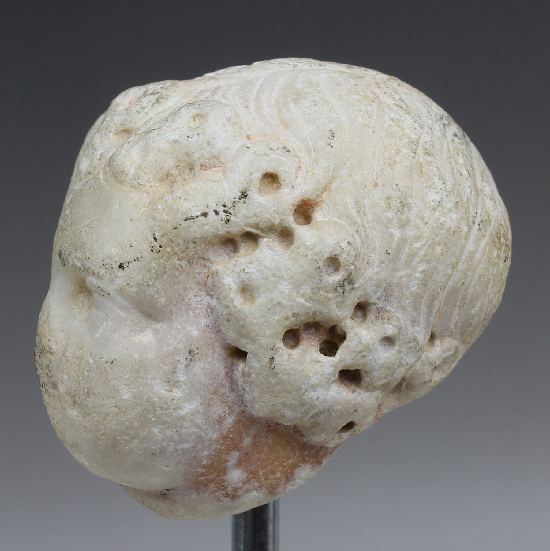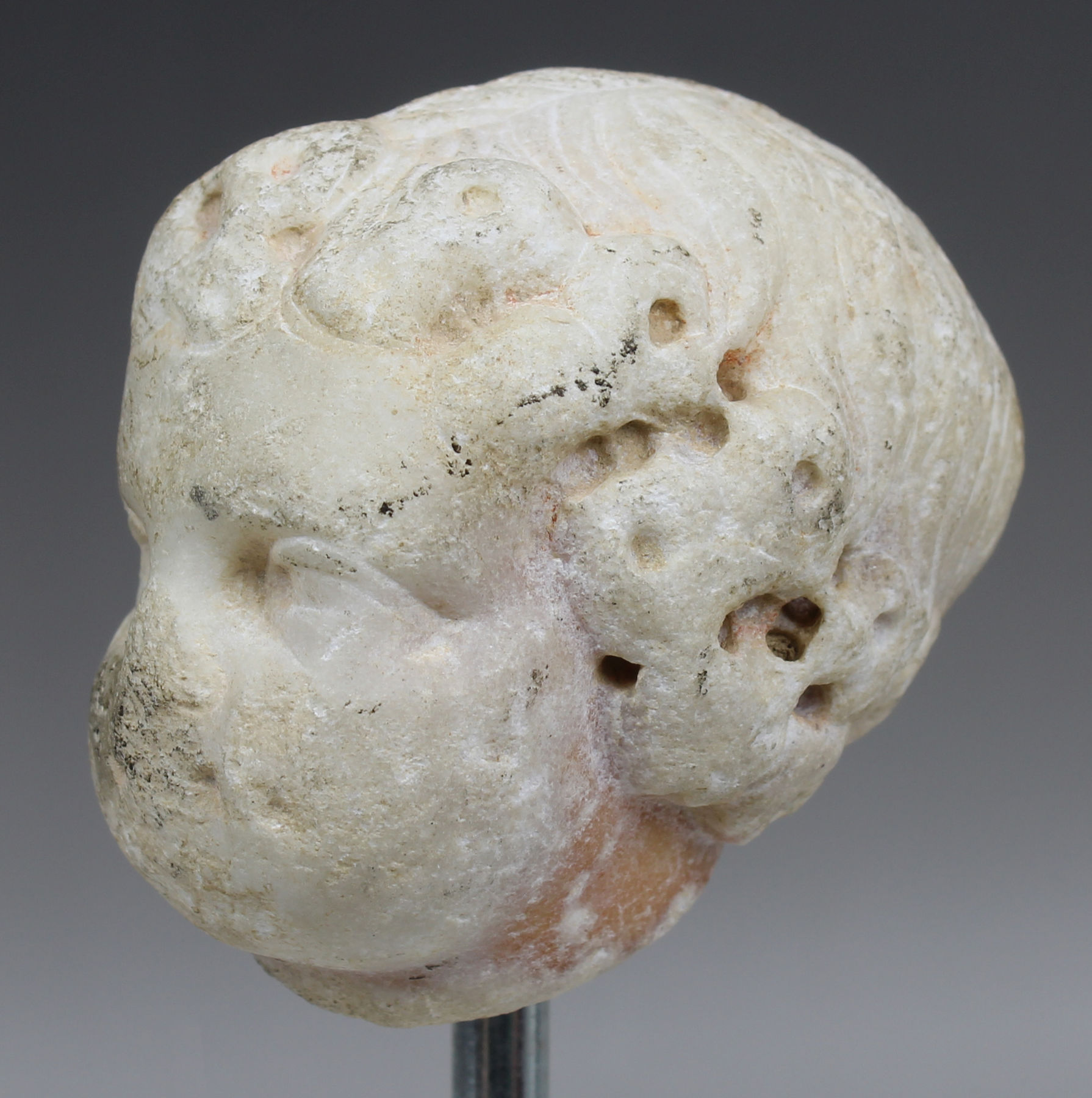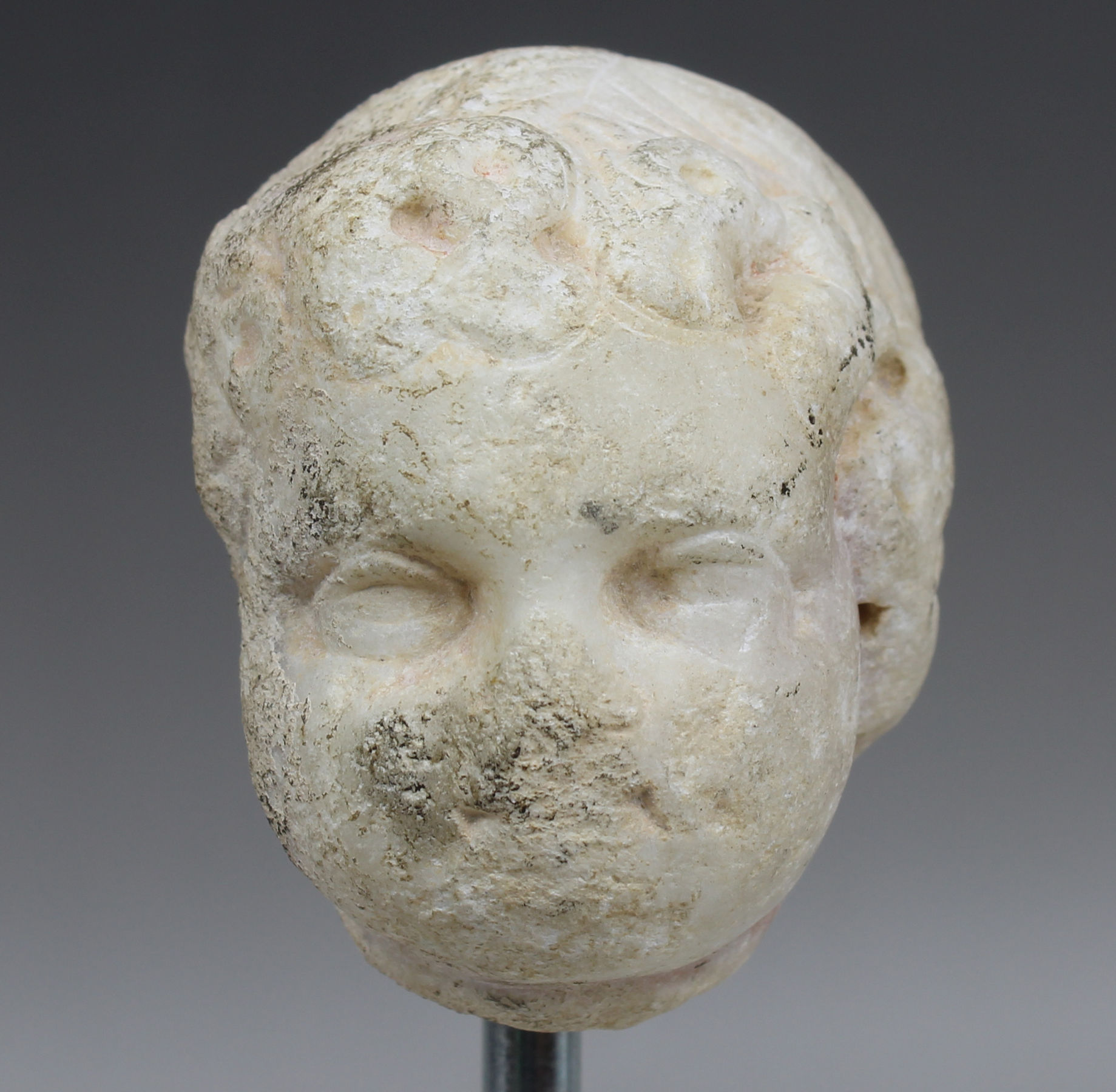These Roman marble child heads, with their lifelike details and symbolic significance, offer a unique window into the art and culture of the Roman Empire. Made from high-quality marble and carved with exceptional precision, they strike a delicate balance between capturing naturalistic features and idealizing the beauty of youth. Often created as portraits of specific individuals, these sculptures served as important symbols of family and lineage, and some were placed on funerary monuments to memorialize deceased children. Drawing from Greek artistic traditions while adding their own Roman interpretation, these sculptures provide a tangible connection to the past and a testament to the skill and artistry of Roman sculptors.