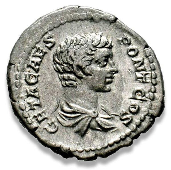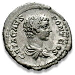 | OBVERSE | GETA CAES PONT COS, draped bust right |
