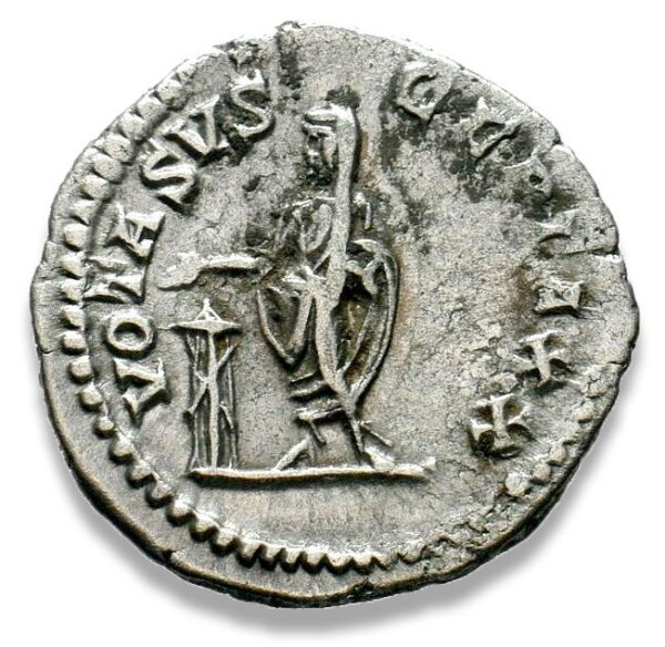 | REVERSE | VOTA SVSCEPTA XX, emperor standing sacrificing from patera over altar left |