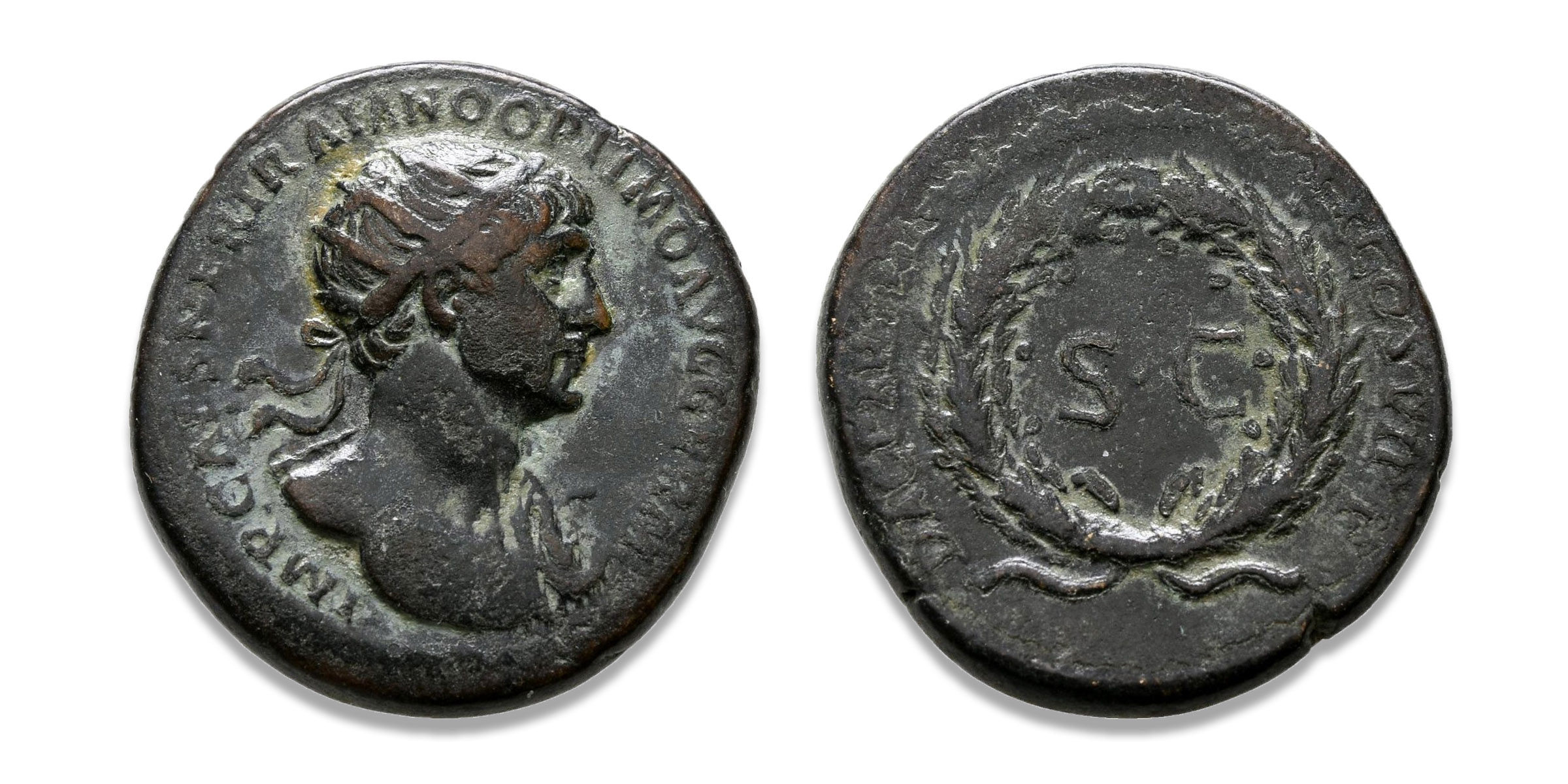 | REVERSE | DAC PARTHICO PM TRPOT XX COS VI P P, large SC within oak-wreath |