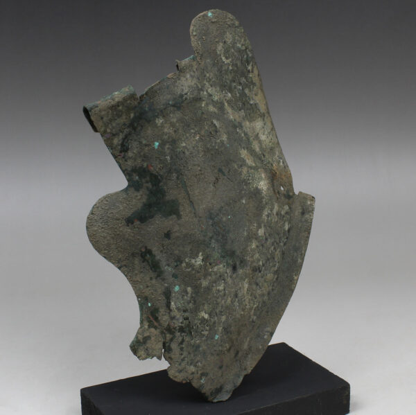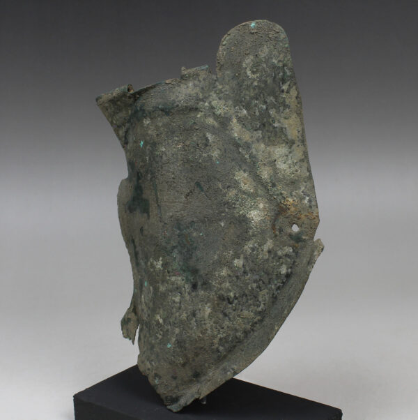 Archaeological findings often include helmet fragments with preserved cheek pieces, providing valuable insights into the design and craftsmanship of Roman military gear. The cheek pieces were usually secured to the helmet with rivets, allowing for some movement to accommodate the wearer’s comfort and range of motion. The decoration and shape of these pieces varied across different Roman periods and regions, reflecting the evolving styles and preferences of the Roman military. Some cheek pieces were plain and utilitarian, while others featured intricate designs, inscriptions, or symbols that may have held symbolic or unit-specific significance.