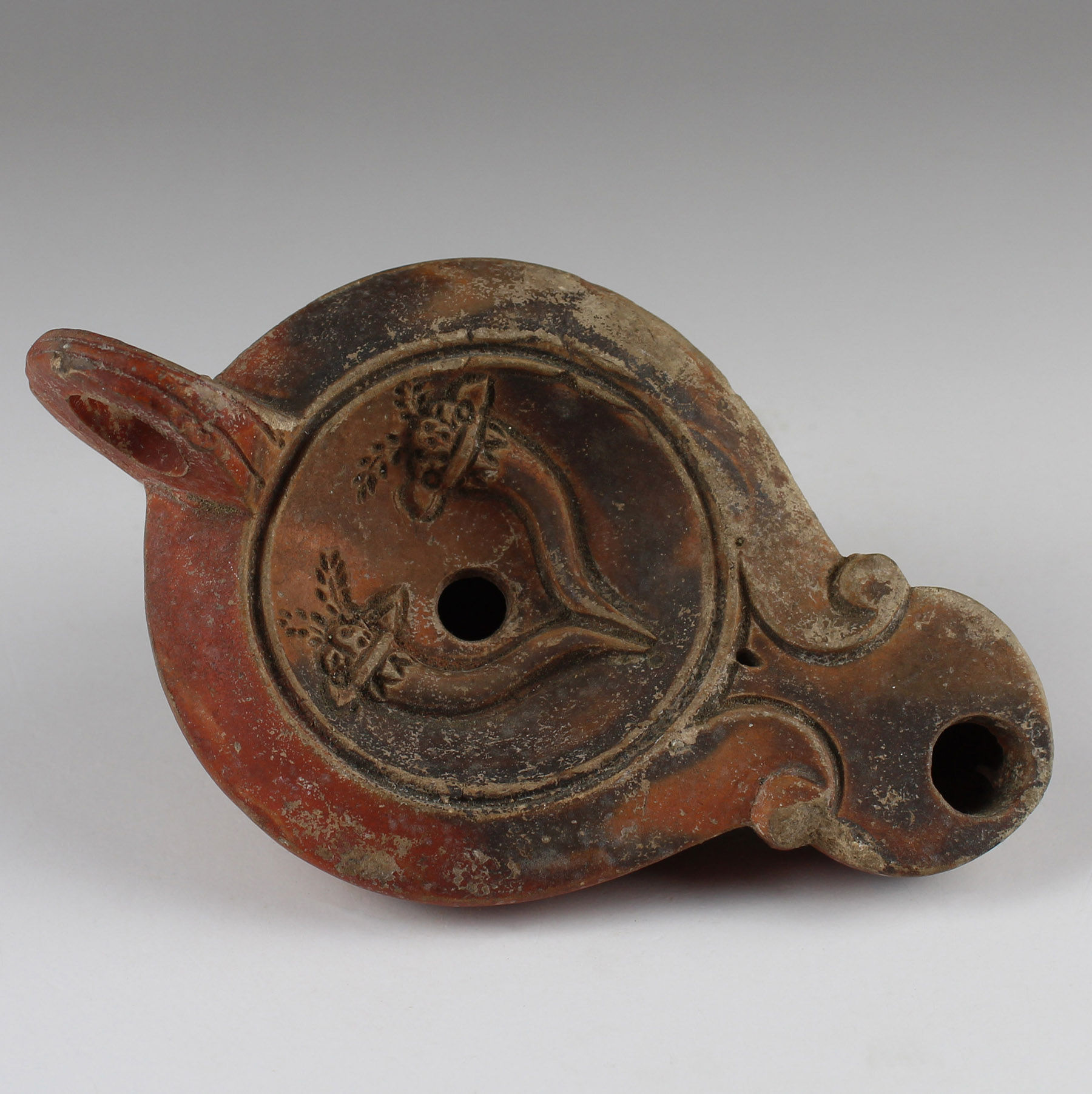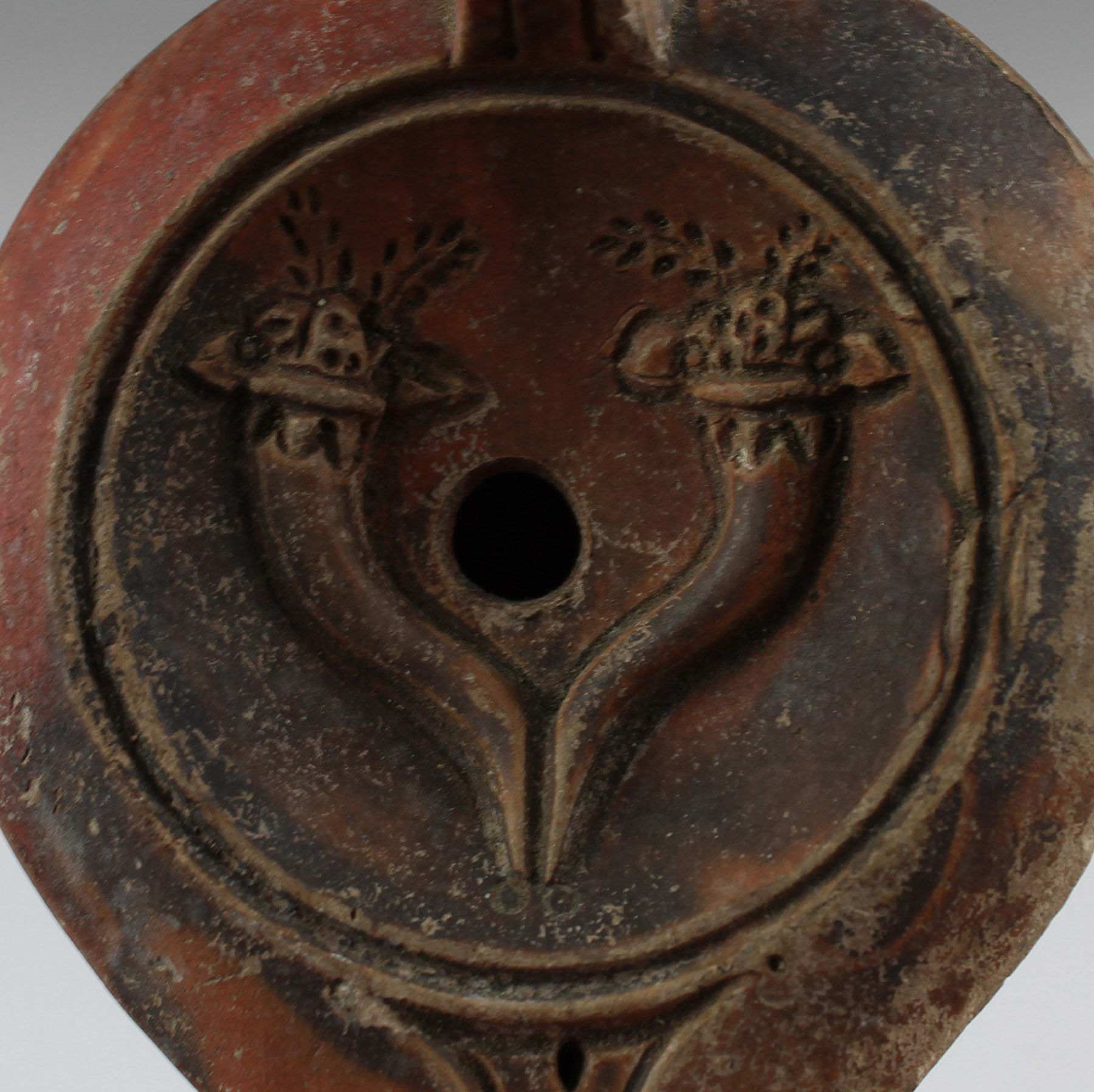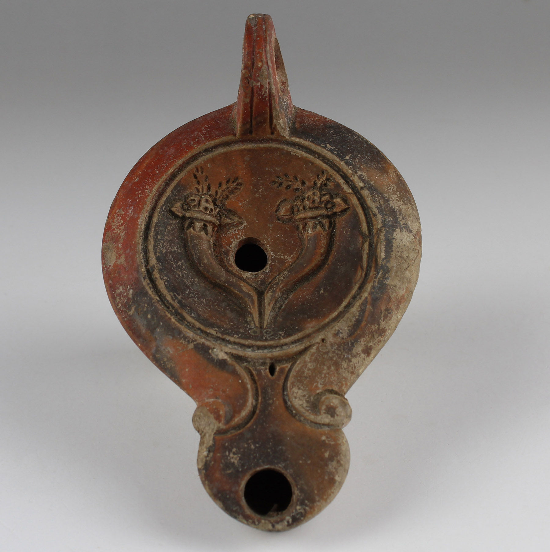 | ITEM | Factory oil lamp with cornucopias and initials stamp, Type Bussiere B IV 3 |