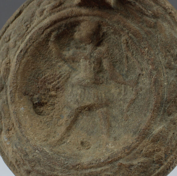 With the systematic use from the 1st century BC of moulds in the process of manufacturing ceramic oi lamps, the discs, until now free of decoration, were gradually covered with a rich and varied iconographic repertoire (vegetable crowns, animals, scenes from everyday life, etc.)
