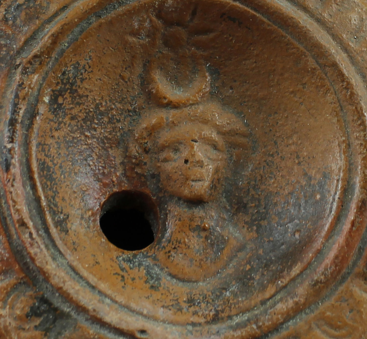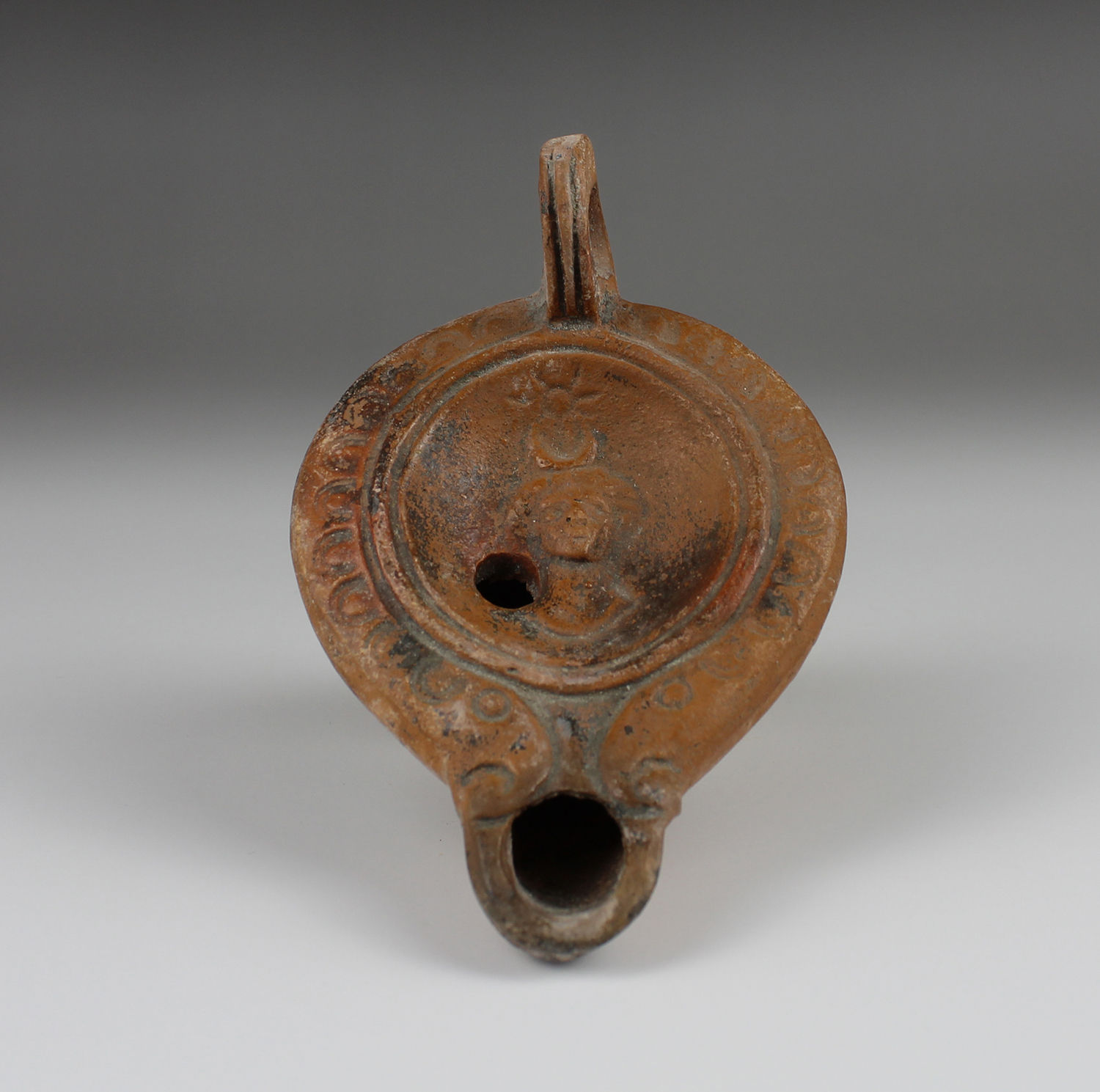 Roman oil lamp with Luna