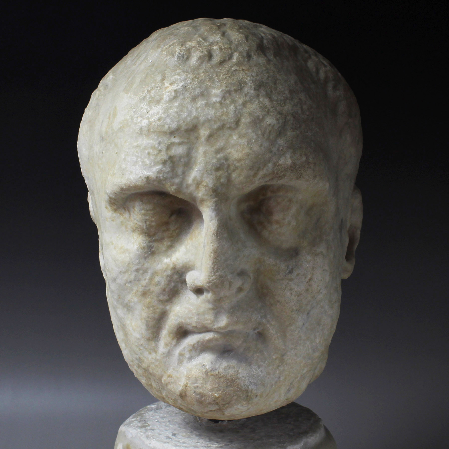 During the first century B.C., many men throughout the Mediterranean world chose to be represented in an uncompromisingly realistic manner that accentuated their individual features and the effects of age. This style of portraiture accorded especially well with the austere values of the Roman Republic, which lasted from the fifth century until the late first century B.C.