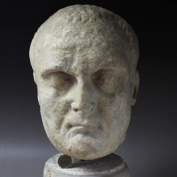 The ancestor cult, in turn, influenced a deep connection to family. For Late Republican politicians without any famous ancestors (a group famously known as ‘new men’ or ‘homines novi’) the need was even more acute—and verism rode to the rescue. The adoption of such an austere and wizened visage was a tactic to lend familial gravitas to families who had none—and thus (hopefully) increase the chances of the aristocrat’s success in both politics and business. This jockeying for position very much characterized the scene at Rome in the waning days of the Roman Republic and the Otricoli head is a reminder that one’s public image played a major role in what was a turbulent time in Roman history.
