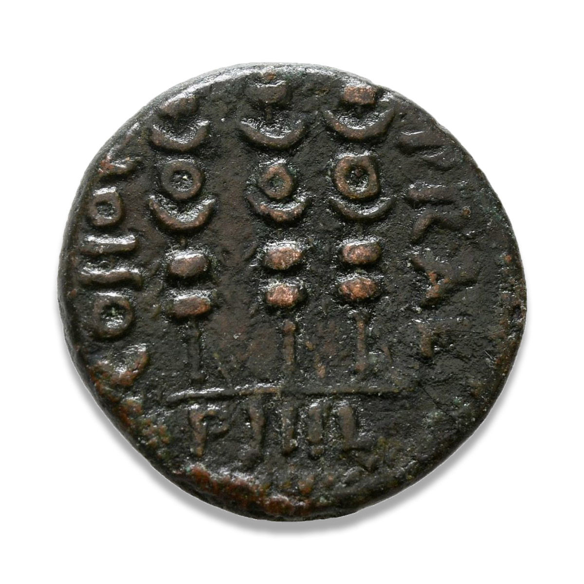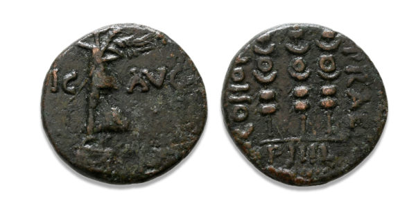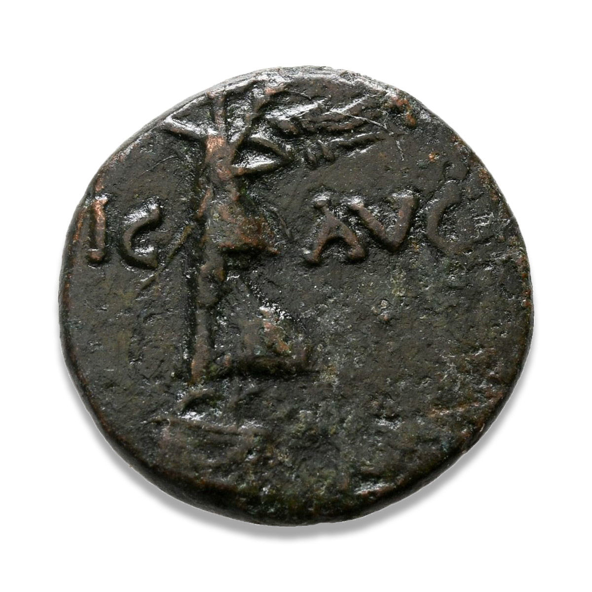 | OBVERSE | VIC AVG standing left on basis, holding wreath and palm frond |
