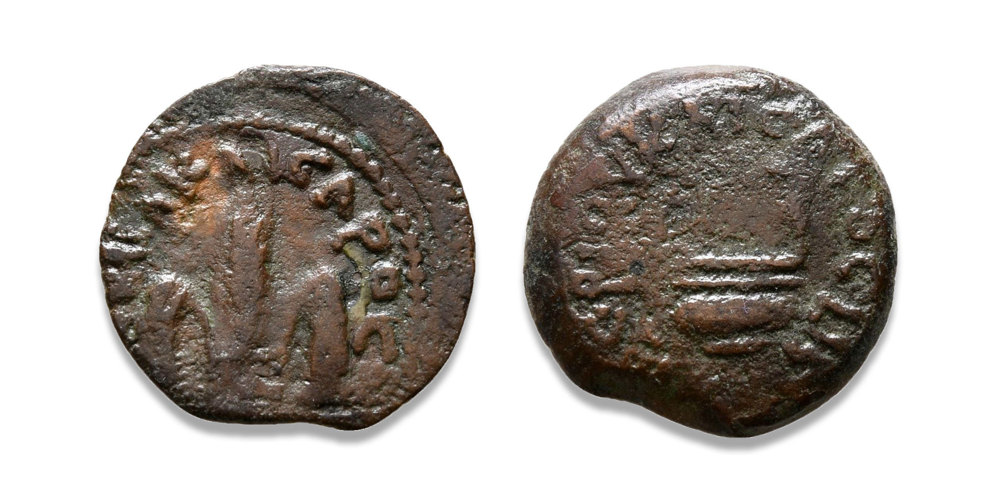 OBVERSEIOVLIAC KAICAPOC, three grain ears bound together