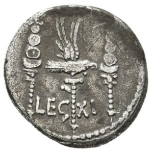 | REVERSE | LEG XV, aquila and two legionary standards |
