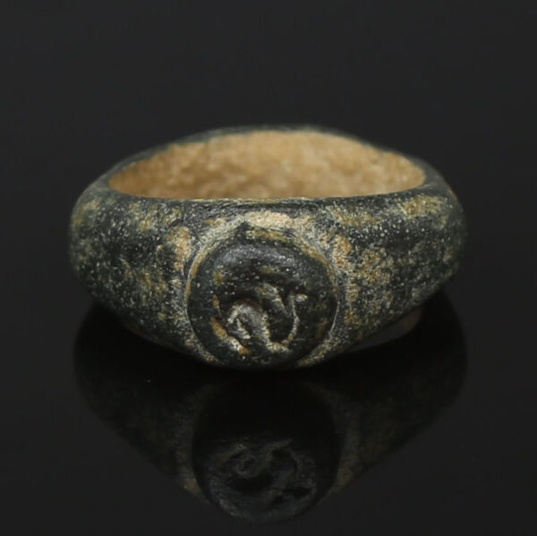 The dolphin motif in Roman rings also carried symbolic significance beyond mere aesthetics. Dolphins were often associated with the god Neptune, the Roman god of the sea, who was depicted riding dolphins in classical art and mythology. Additionally, dolphins were believed to be creatures of good fortune and protection, and wearing a dolphin ring was thought to bring luck and safeguard the wearer from harm during sea voyages or maritime endeavors.