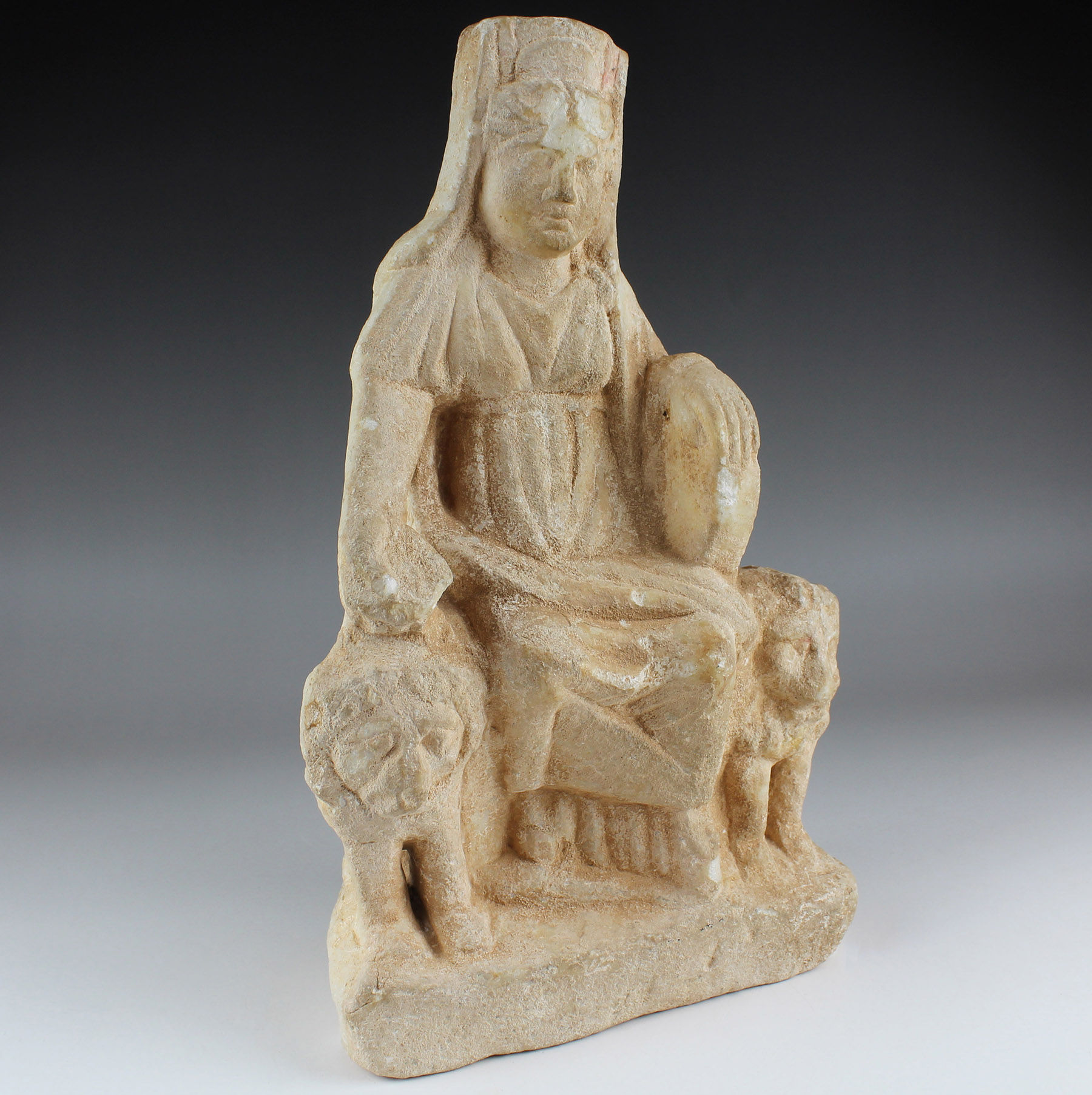 The Great Mother was especially prominent in the art of the empire. She usually appears with mural crown and veil, seated on a throne or in a chariot, drawn by two lions. (In some accounts, the lions were originally Atalanta and Hippomenes.)