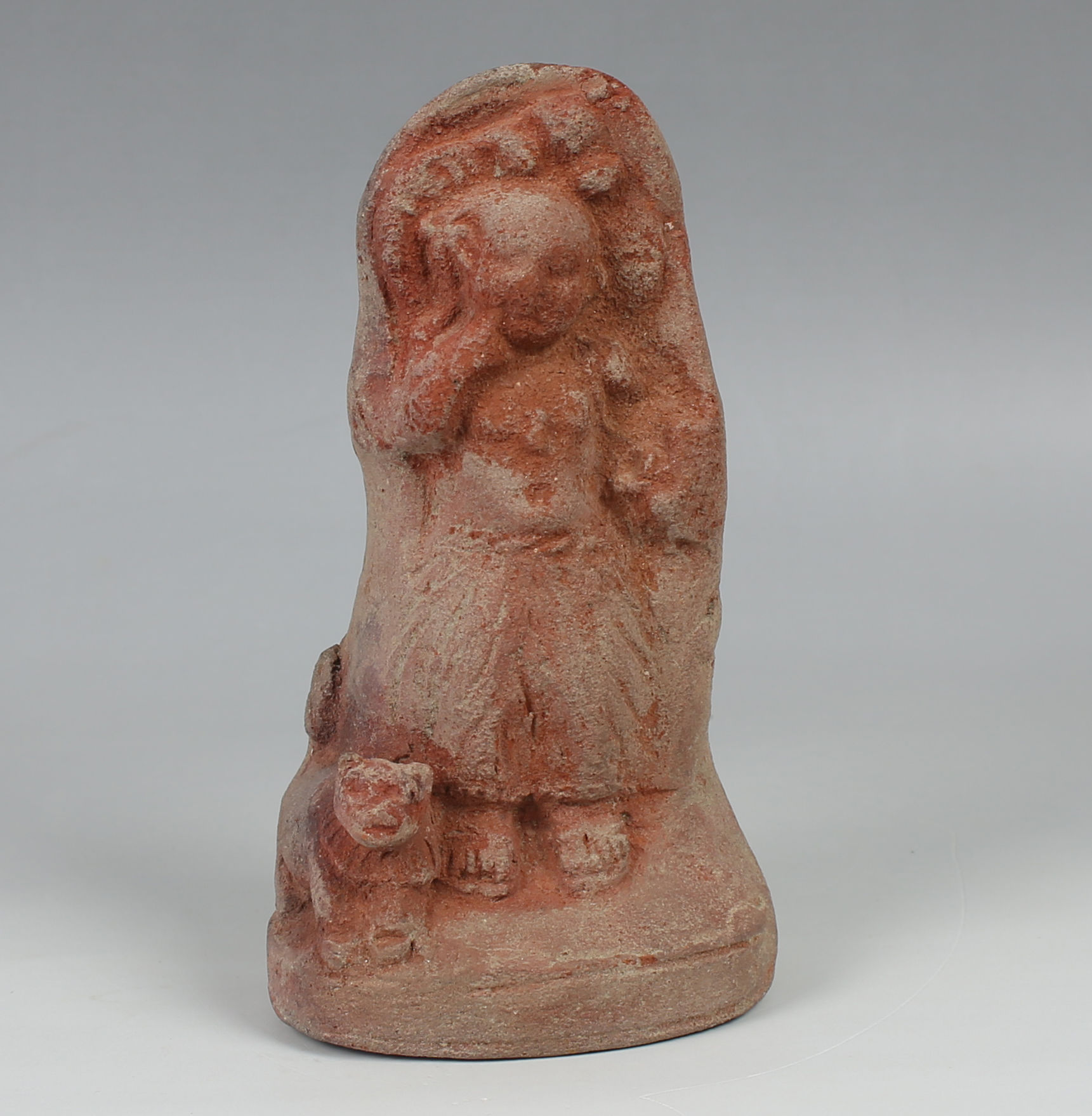 Roman depictions of Harpocrates often show him as a nude or semi-nude boy, sometimes seated on a lotus flower or holding cornucopiae, symbolizing fertility and abundance. In many cases, he wears the atef or solar crown, or appears with attributes linked to Isis and Serapis, reflecting his place within the wider Greco-Egyptian religious system. Statuettes and reliefs of Harpocrates were common in household shrines, indicating that he was worshipped as a protective and benevolent deity who ensured prosperity, health, and divine favor.