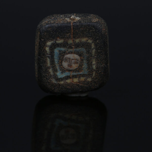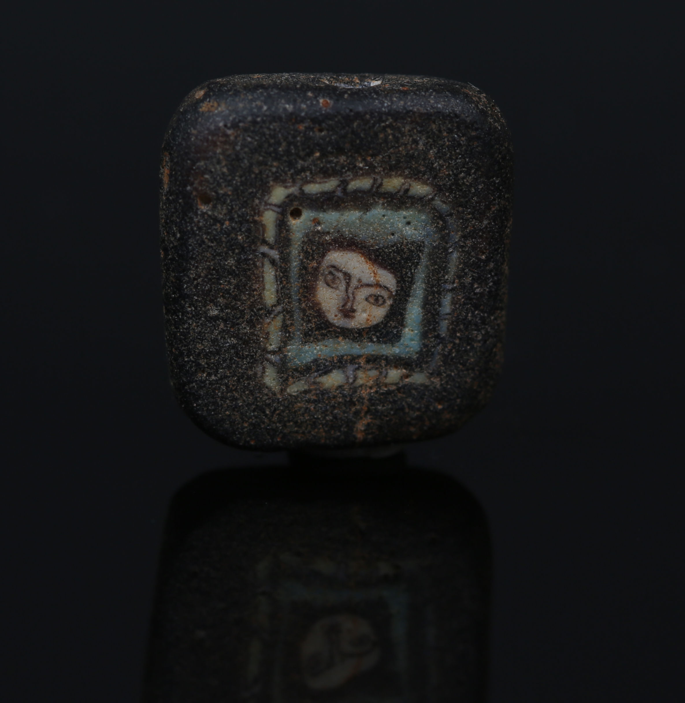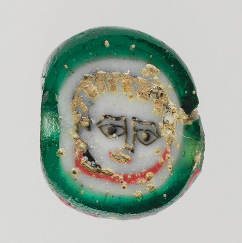 The glass mosaic beads were created using a core-forming technique, where small glass pieces were arranged and fused onto a core of molten glass. This method allowed artisans to produce a wide range of patterns and colors, using materials like blue, green, red, yellow, and white glass, which were then molded into bead shapes. Some beads were made using a process known as cane glass, where glass rods were stretched and cut into small pieces to create a mosaic effect. The beads were often cylindrical, spherical, or disc-shaped, with some featuring additional decorative elements, such as gold leaf or inlays of semi-precious stones like lapis lazuli. These beads were then strung together to create necklaces, bracelets, or other forms of jewelry, reflecting the fusion of Roman luxury and Egyptian artistry.