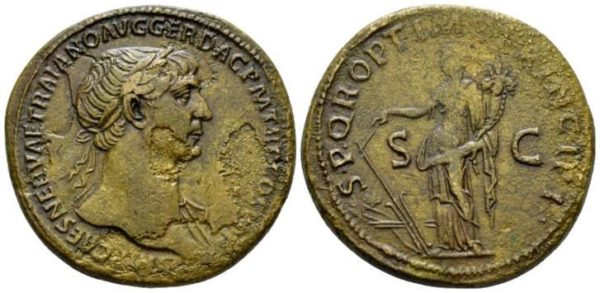 | OBVERSE | IMP CAESA NERVAE TRAIANO AVG GER DAC P M TR P COS V P P |