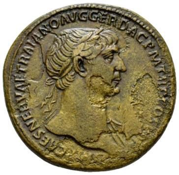 | OBVERSE | IMP CAESA NERVAE TRAIANO AVG GER DAC P M TR P COS V P P |