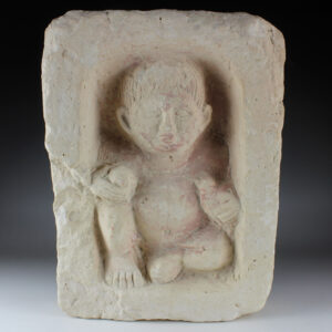 Romano-Egyptian funerary stele depicting a boy with a bird and a ball