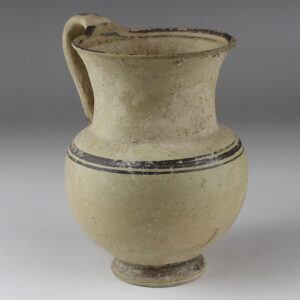 Greek lekythos, Cock Group, depicting a mincing satyr and maenad between two draped youths